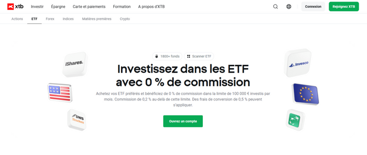 Courtier polonais fondé en 2002 et présent en France depuis 2010, XTB s'est imposé comme une référence pour les investisseurs. Un des principaux atouts d'XTB est de concilier une offre de trading avec des CFD et une offre épargne avec des produits plus classiques (actions et ETF). L'ajout du PEA en 2025 en fait désormais un incontournable des courtiers français. Pour l'offre d'investissement, le catalogue est étoffé avec plus de 4.000 actions et 1.500 ETF accessibles sur les principales places boursières mondiales.