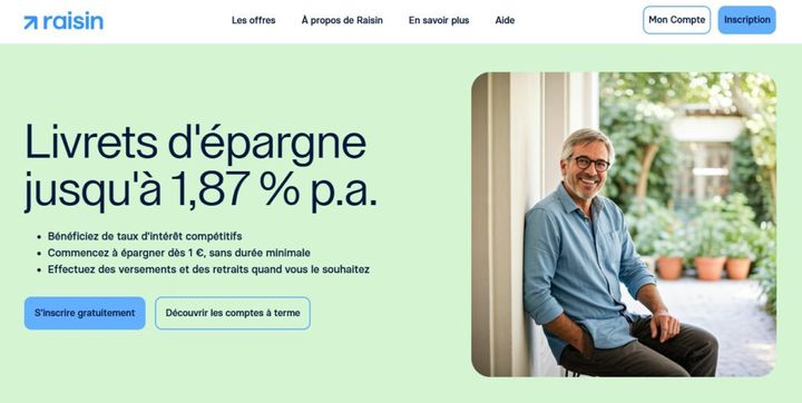 Raisin est un courtier qui regroupe les offres des meilleurs livrets bancaires et comptes à terme. De nouvelles offres sont régulièrement proposées. Les taux sont généralement très compétitifs.