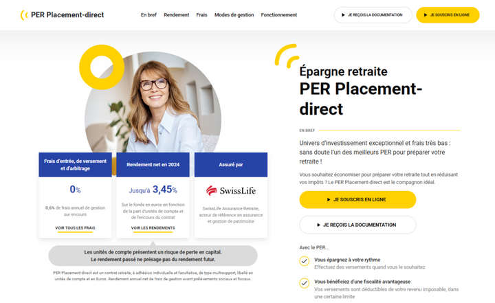 Tout comme son concurrent Linxea, Placement-direct est reconnu pour son offre d’assurance-vie en ligne. Avec son PER, le courtier en ligne nous propose un contrat XXL. Ce n’est pas moins de 1.000 UC, 57 ETF ou encore 20 supports immobiliers qui sont proposés.