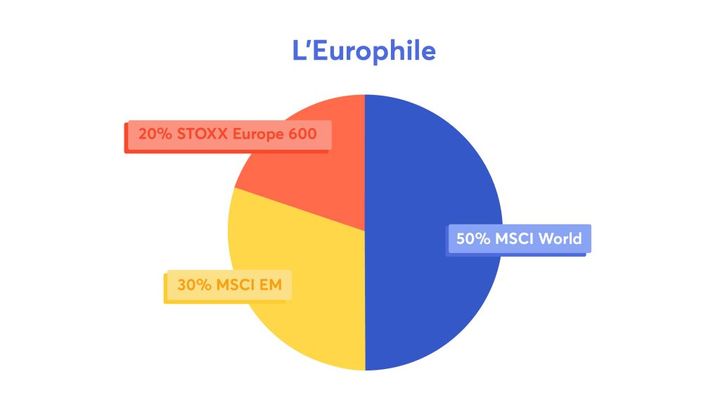 L’europhile convient aux investisseurs qui souhaitent mettre plus de focus sur l’Europe. En effet, le MSCI World est surpondéré sur les USA, et le MSCI Emerging markets est surpondéré sur l’Asie. L’objectif ici est d’ajouter un ETF sur le stoxx 600, afin de rééquilibrer géographiquement le PEA.